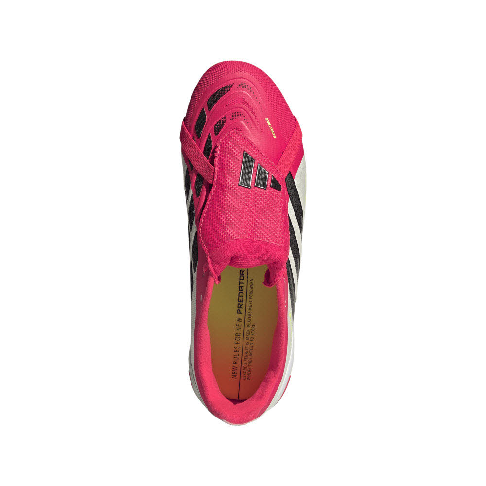 Mit dem Predator League Fold-Over Tongue Fußballschuh können deine Kids selbstbewusst aufs Spielfeld treten. Dieser Schuh wurde entwickelt, um das Potenzial junger Spielerinnen und Spieler freizusetzen, und verfügt über innovative Technologien für Kontrolle und Präzision auf Kunstrasen. Die Nanostrike Technologie sorgt für eine ganz neue Synergie zwischen Passform und Grip-Technologie. Das Obermaterial aus Mesh ist besonders weich und leicht, und der Fußballschuh hat ein integriertes haptisches Overlay für verbesserte Schusspräzision. Die leistungsstarke Verarbeitung mit integrierter Powerspine Technologie sorgt für Stabilität im Mittelfußbereich und damit für einen stärkeren Schuss. Die umschlagbare Zunge verleiht diesem Schuh einen klassischen Look und erinnert an frühere Designs dieses kultigen adidas Modells. Gleichzeitig sorgt die glatte Schussfläche dafür, dass jeder Ballkontakt zählt. Das schlichte Obermaterial, die robuste Außensohle und die Stollen spiegeln die Qualität wider, für die adidas bekannt ist. Ob am Spieltag, beim Training oder bei einem Treffen mit Freunden - mit diesem Schuh hat dein Kind das Gefühl, dass alles möglich ist. Entfache seine Fußballleidenschaft in diesem neu aufgelegten Klassiker.