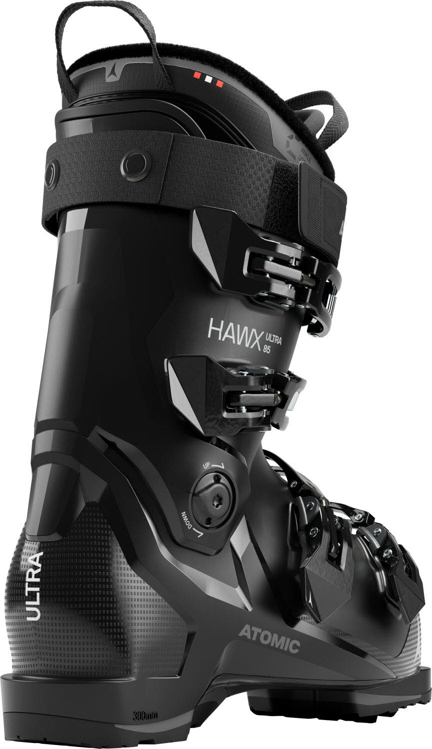 Der Atomic Hawx Ultra 85 W hat einen weicheren Flex und verzeiht mehr Fehler als die anderen Modelle aus der leistungsstarken Hawx Ultra W Linie - und bietet All-Mountain-Fahrerinnen das legendäre Hawx Gefühl in Kombination mit einem komfortablen, schmalen 98mm-Fit. Mit dabei: Prolite, eine dünne Konstruktion mit Verstärkungen an den entscheidenden Stellen der Schale und Manschette, das Ergebnis ist ein leichter und zugleich stabiler Skischuh. Energy Link, eine dynamische Verbindung von Schale und Manschette auf der Skischuhrückseite, präzisiert die Kraftübertragung auf die Ski. Der Mimic Silver Innenschuh mit Ankle Lock kann per Mimic Thermoanpassung exakt auf die Fußform abgestimmt werden, die asymmetrisch vorgeformte 3D Stretch Zehenbox bietet dem großen Zeh für optimierten Komfort insgesamt etwas mehr Platz. Außerdem lassen sich Schale und Manschette mit Memory Fit weiter individuell anpassen. Und die anpassbare Manschettenkonstruktion hat einen herausnehmbaren Spoiler, mit dem man das Volumen innerhalb der Manschette variieren kann.