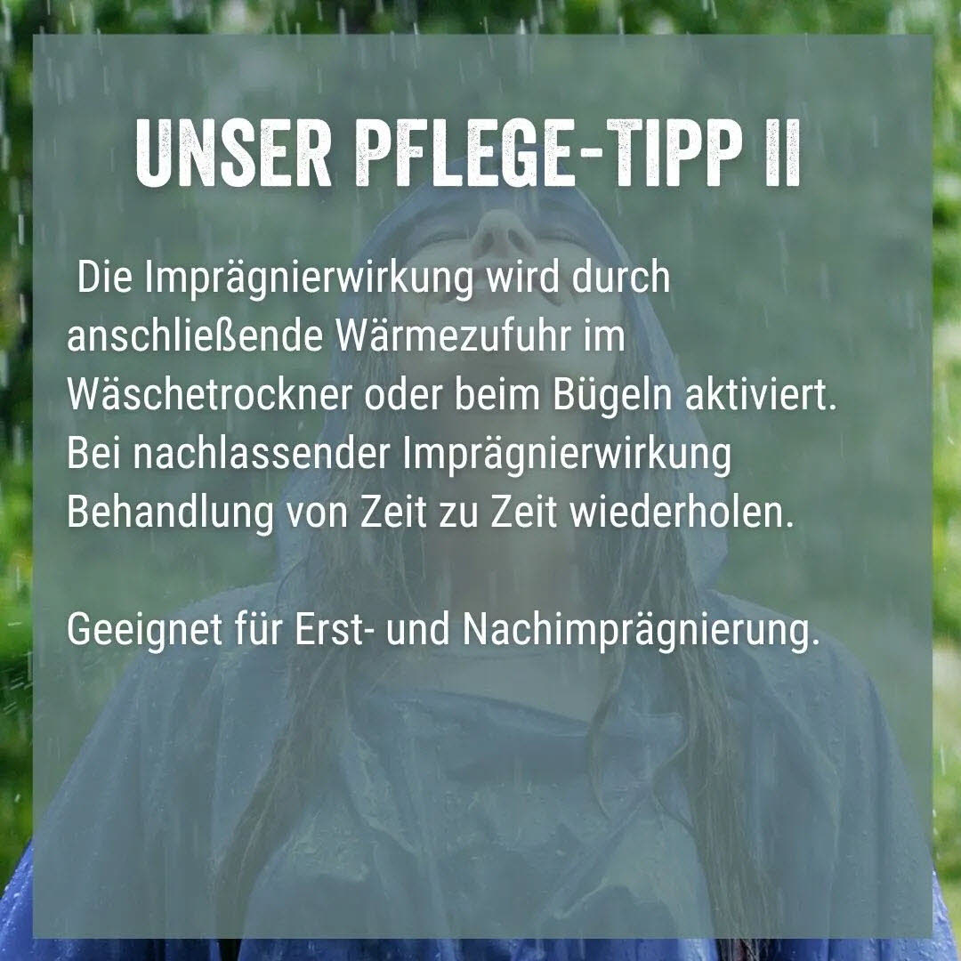 - imprägniert alle Textilien aus natürlichen und synthetischen Fasern