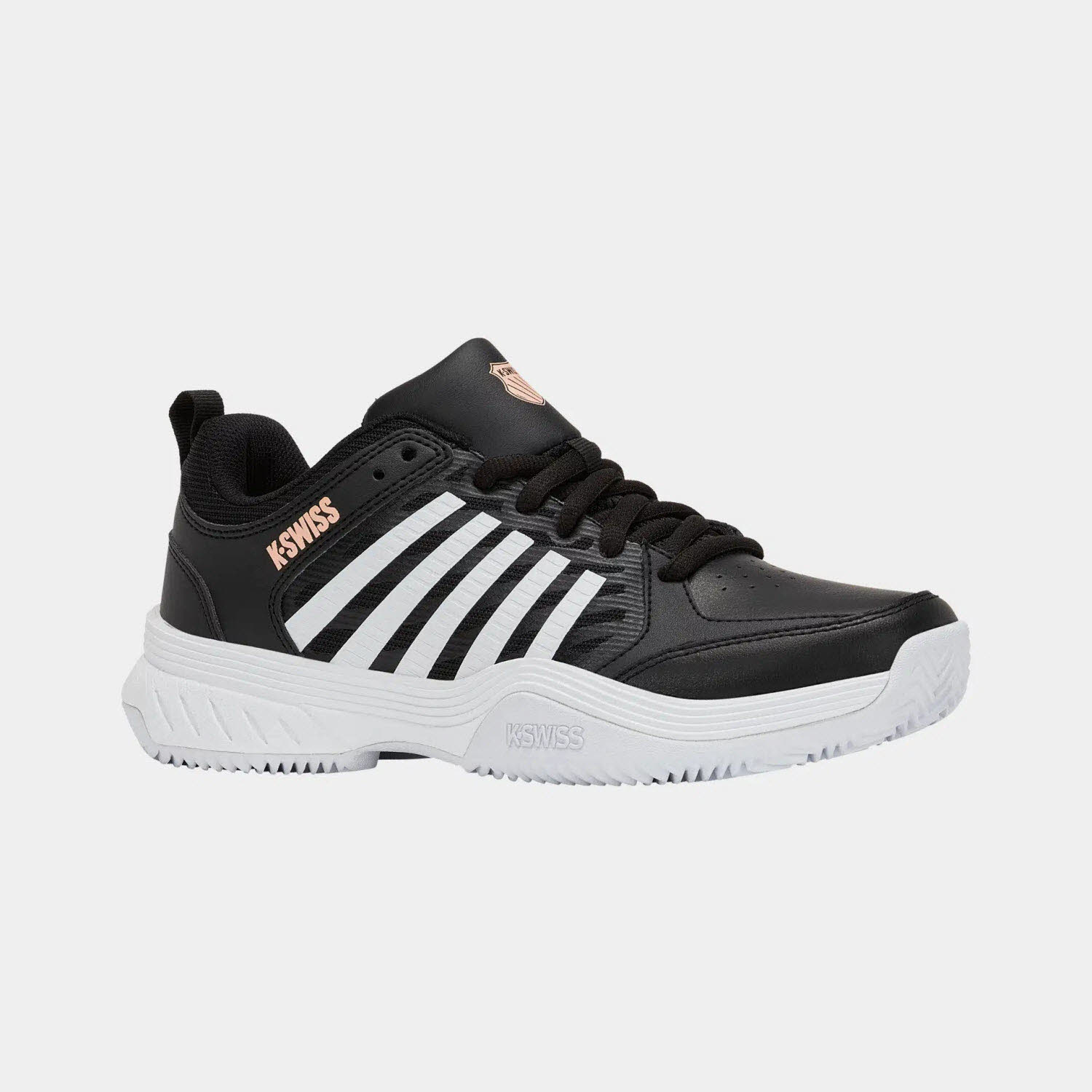 The Court Express 2 Clay builds on K-Swiss's best-selling Express platform to deliver comfort, support, and durability for developing players on clay. A breathable mesh upper keeps the foot cool, while the K-EVA midsole provides responsive cushioning. The Aösta 7.0 rubber outsole uses a deep herringbone tread for dependable traction and long-lasting wear on clay courts. Lightweight, stable, and ready to perform point after point on clay.