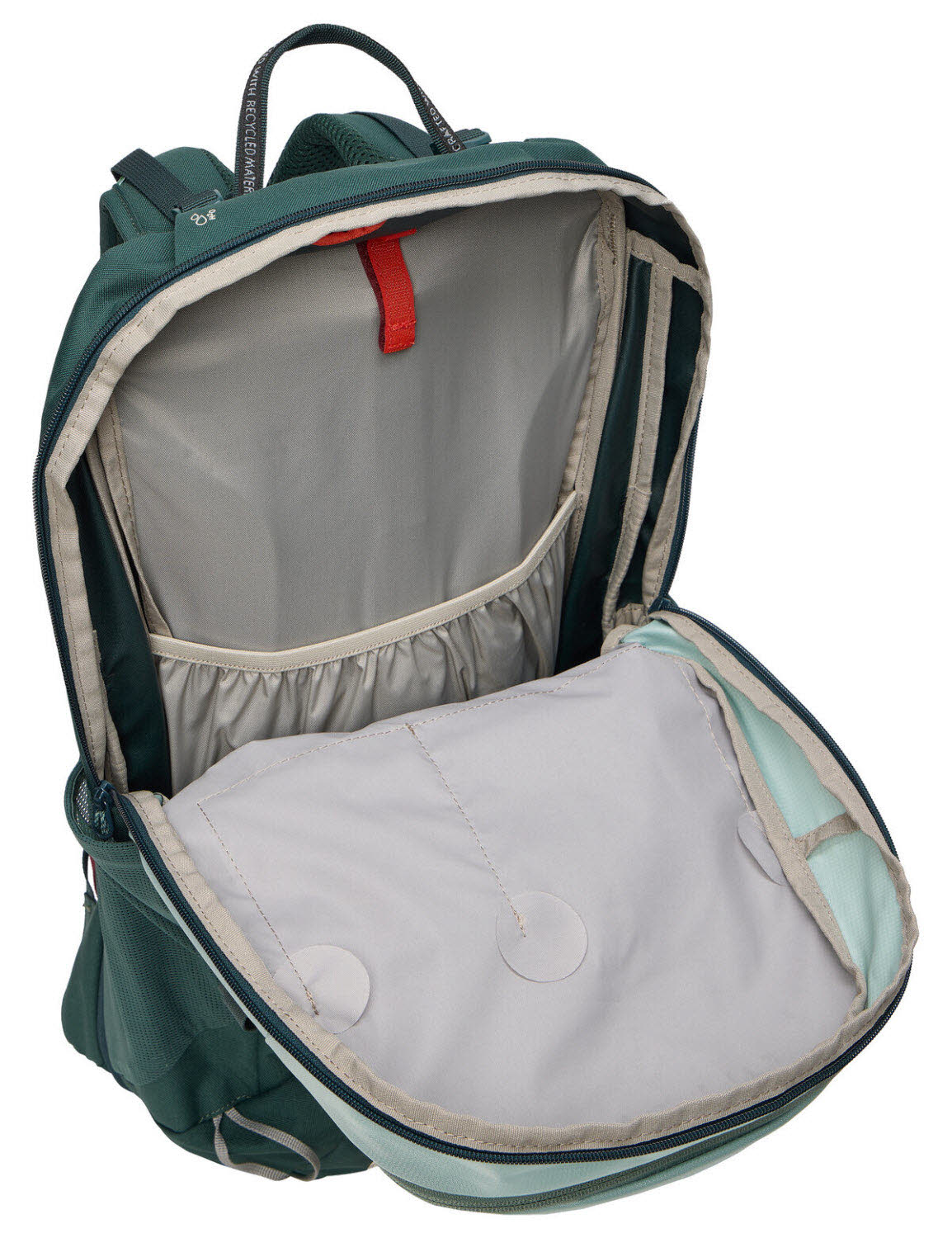 In der Regel muss man sich bei Rucksäcken entscheiden: entweder Stabilität oder Belüftung, Körperkontakt- oder Netzrücken. Der Wizard 22+4 Liter Wanderrucksack für Damen löst diesen Konflikt mit seinem Aeroflex-Control-System. Der Abstand des Packsacks zum Rücken lässt sich »on the go« stufenlos verstellen. So ist der Rücken im Aufstieg gut belüftet, im Abstieg oder in kniffligen Passagen sitzt die Last gut kontrolliert eng am Rücken. Diese Anpassungsfähigkeit erweitert das Einsatzspektrum des Wizard 22+4 Liter Wanderrucksacks für Damen vom Alltag über Radtouren bis zum Klettersteig. Zudem lässt sich die Rückenlänge perfekt auf die eigene Körpergröße einstellen. Variabel ist auch der Stauraum: Die integrierte Reißverschluss-Volumenerweiterung und der Organizer in der Fronttasche sorgen für Flexibilität und Ordnung. Zwei seitliche Netztaschen, Kompressionsriemen, eine Stockhalterung und eine Trinksystemöffnung runden die Ausstattung des Wanderrucksacks ab. Das robuste Außenmaterial ist mit Eco Finish wasser- und schmutzabweisend ausgerüstet. VAUDE verzichtet dabei auf Fluorcarbone, sogenannte PFAS- beziehungsweise PFC-Chemikalien, die im Verdacht stehen, gesundheitsschädlich zu sein. Der vollwertige, gepolsterte Hüftgurt garantiert eine gute Lastübertragung, in die integrierte Reißverschlusstasche passen auch große Smartphones. Inklusive Regenhülle. Das VAUDE Green Shape-Label steht für ein umweltfreundliches, funktionelles Produkt aus nachhaltigen Materialien.
