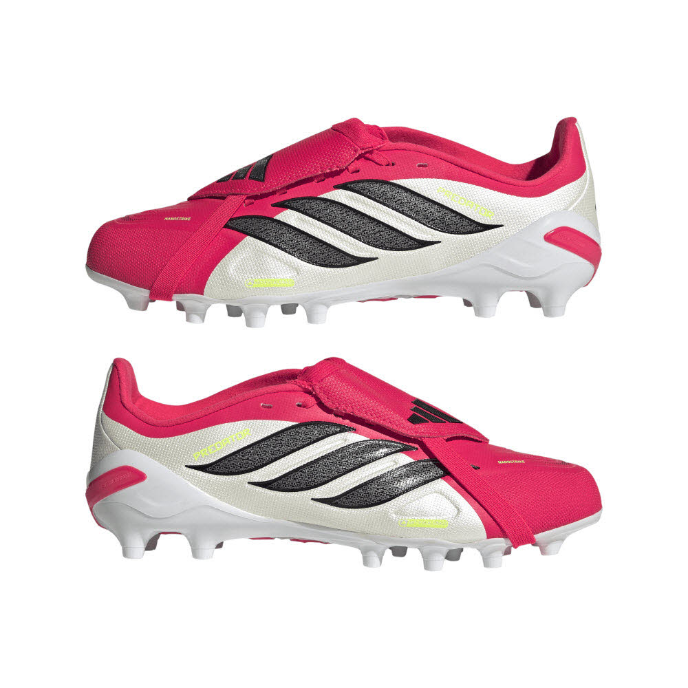 Mit dem Predator League Fold-Over Tongue Fußballschuh können deine Kids selbstbewusst aufs Spielfeld treten. Dieser Schuh wurde entwickelt, um das Potenzial junger Spielerinnen und Spieler freizusetzen, und verfügt über innovative Technologien für Kontrolle und Präzision auf Kunstrasen. Die Nanostrike Technologie sorgt für eine ganz neue Synergie zwischen Passform und Grip-Technologie. Das Obermaterial aus Mesh ist besonders weich und leicht, und der Fußballschuh hat ein integriertes haptisches Overlay für verbesserte Schusspräzision. Die leistungsstarke Verarbeitung mit integrierter Powerspine Technologie sorgt für Stabilität im Mittelfußbereich und damit für einen stärkeren Schuss. Die umschlagbare Zunge verleiht diesem Schuh einen klassischen Look und erinnert an frühere Designs dieses kultigen adidas Modells. Gleichzeitig sorgt die glatte Schussfläche dafür, dass jeder Ballkontakt zählt. Das schlichte Obermaterial, die robuste Außensohle und die Stollen spiegeln die Qualität wider, für die adidas bekannt ist. Ob am Spieltag, beim Training oder bei einem Treffen mit Freunden - mit diesem Schuh hat dein Kind das Gefühl, dass alles möglich ist. Entfache seine Fußballleidenschaft in diesem neu aufgelegten Klassiker.