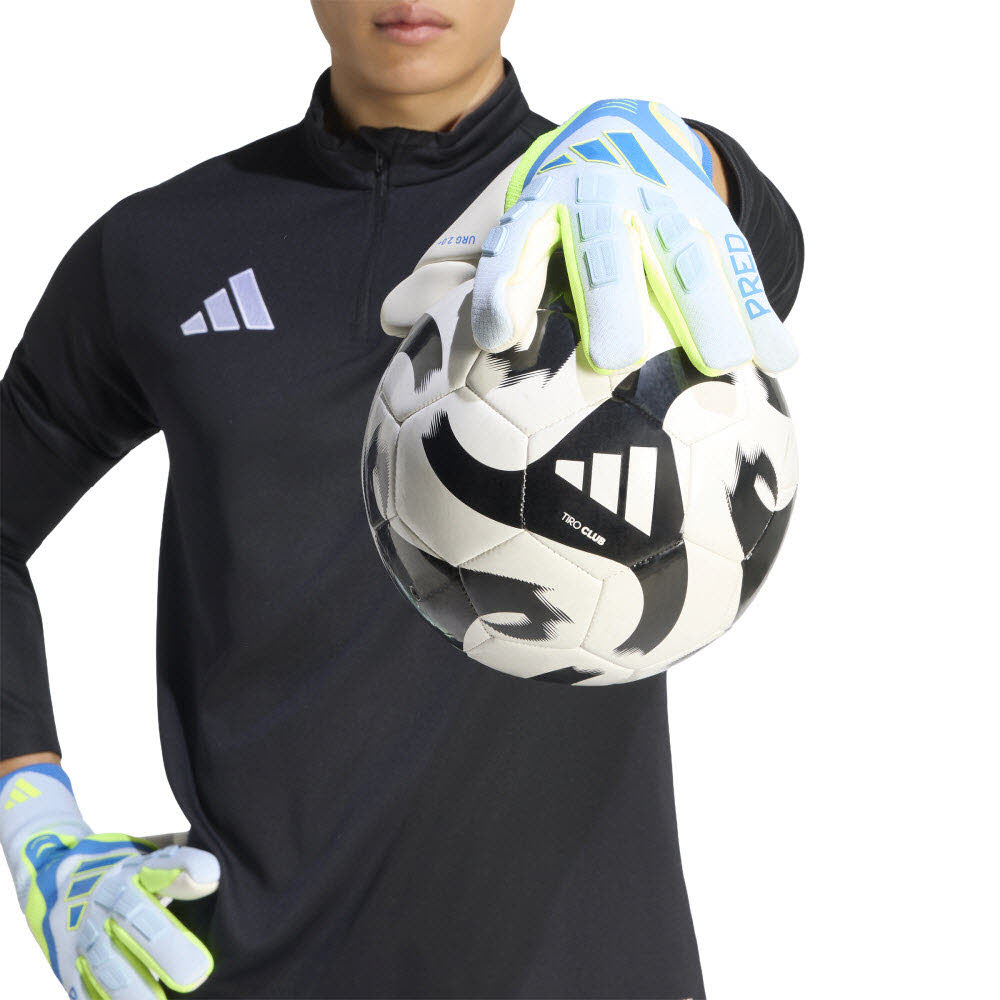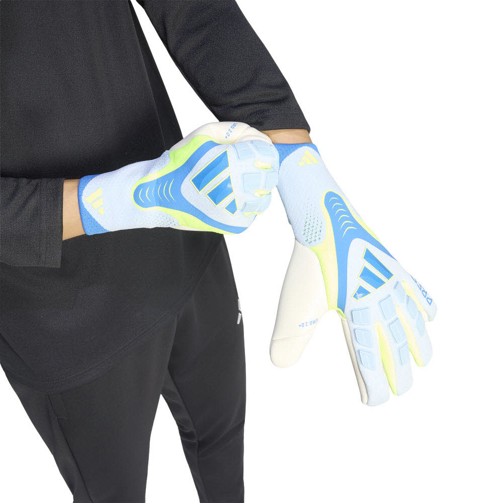 Der Predator Goalkeeper Torwarthandschuh Pro ist dein Verbündeter auf dem Spielfeld. Diese Handschuhe wurden für alle entwickelt, die bereit sind, sich jeder Herausforderung zu stellen. Sie werden von Profis getragen und verkörpern den Spirit echter Champions. Das dehnbare FushionMesh Material auf der Rückhand sorgt für Atmungsaktivität sowie Flexibilität und ermöglicht so uneingeschränkte Handbewegungen. Der URG 2.0+ Schaum garantiert zuverlässigen Grip bei verschiedensten Wetterbedingungen. Zudem gewährleistet der technisch gestrickte Schaft mit Negativschnitt eine sichere Passform für deine Hände. Die TipGrip Fingerspitzenverstärkungen ermöglichen einen effektiven Ballkontakt, während die ThumbControl Konstruktion dort Grip bietet, wo du ihn am dringendsten brauchst. Die anatomisch geformte Punching Zone liefert dir zusätzlichen Support und Dämpfung beim Fausten. Die Torwarthandschuhe sind mit einem seitlichen Palmwrap ausgestattet, wodurch eine besonders große Grifffläche entsteht und optimaler Halt gewährleistet wird. Das gibt dir das Selbstvertrauen für schier unmögliche Paraden. Vertraue deinem Instinkt, wenn der Druck am größten ist - mit diesen Handschuhen, die legendäres adidas Branding mit innovativen, leistungsorientierten Details vereinen.