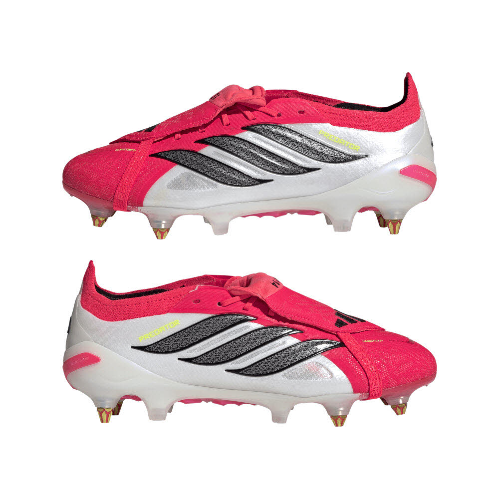 Mit dem Predator Elite Fußballschuh, Weiche Böden, Umschlagbare Zunge wird dein Kind voller Selbstbewusstsein das Spielfeld betreten. Dieser Schuh kombiniert Tradition mit modernster Technologie, damit das Spiel der Kleinen noch besser wird. Mit seiner normalen Passform und den Schnürsenkeln wird dieser von Profis empfohlene Schuh dabei helfen, auf dem Spielfeld das Beste zu geben. Die umschlagbare Zunge schafft eine glatte Schussfläche, die bei jedem Kick die Präzision unterstützt. Das innovative Nanostrike+ Mesh sorgt für federleichte Agilität, während integrierte Gummigrip-Elemente präzise Schüsse bei trockenen wie nassen Bedingungen unterstützen. Die Powerspine Technologie wurde für starke Schüsse entwickelt, ist nahtlos in die Hochleistungskonstruktion integriert und sorgt für Stabilität und Power. Die durchgehende Strikeframe Platte bietet leichtgewichtigen, zuverlässigen Grip, perfekt für torgefährliche Spielsituationen. Die SG Lite Sechskantstollen reduzieren das Gewicht zusätzlich, ohne dabei auf weichen Böden an Grip einzubüßen. Dieser Predator Fußballschuh der nächsten Generation ist dein Schlüssel zum Torerfolg und zu optimaler Ballkontrolle. Erlebe die Zukunft des Fußballs mit adidas, wo Innovation und Tradition auf Style treffen.