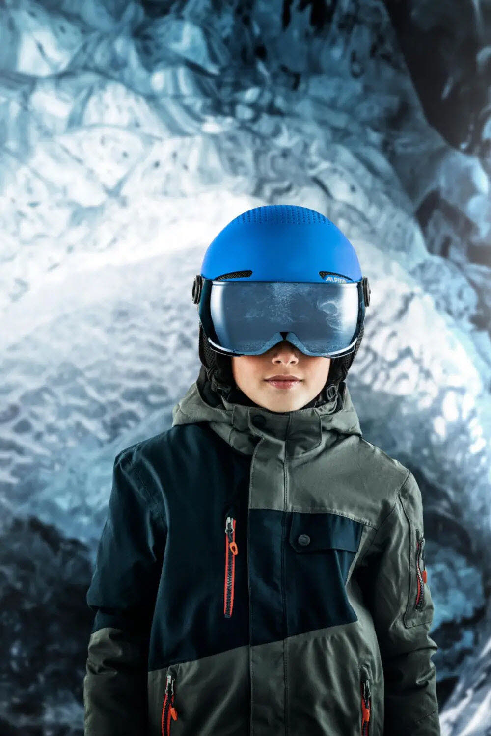 Für den Schutz der Augen sorgt ein nahtlos abschließendes Visier. Die Scheibe ist leicht verspiegelt, bruchfest, bietet 100% UV Schutz und schützt auch vor Zugluft. Weitere Vorteile des Visiers: einfache Handhabung für Kinder, unter dem Visier kann eine optische Brille getragen werden, immer ein perfekter Sitz von Helm und Visier, es kann keine Goggle vergessen oder verloren werden.