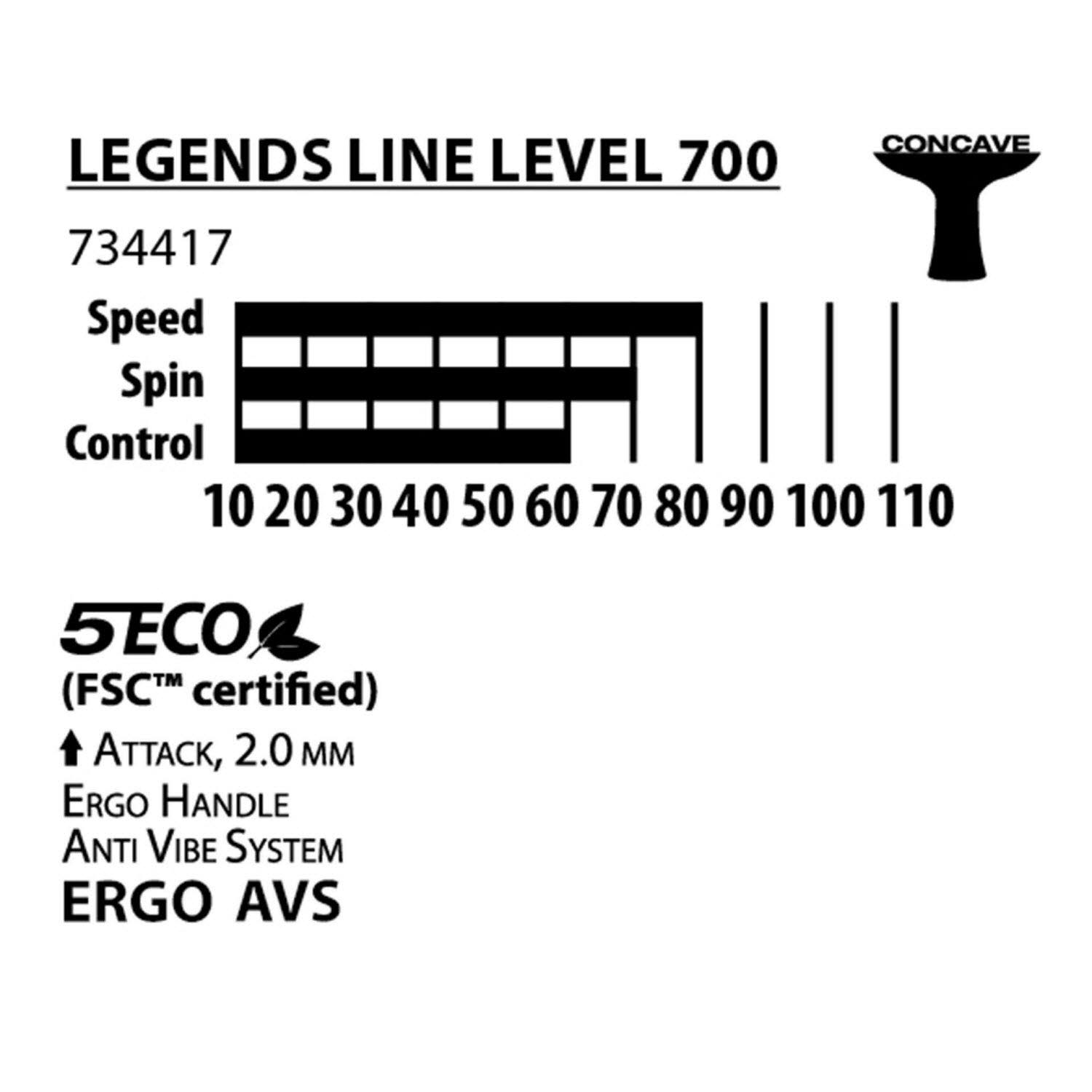 Der "Legends 700 FSC" von Donic-Schildkröt ist ein sehr angenehm zu spielender Schläger dieser zukunftsweisenden Schlägerserie. Dieses Modell Level 700 bietet dem ambitioniertem Freizeitsportler und dem regelmäßigen Hobbyspieler eine gute Holz- und Griffqualität, der aus dem Hause Schildkröt stammende ITTF-zugelassene Avantgarde-Belag bietet einen guten Grip für zuverlässige Übertragung der Spieltechniken (z.B. Spin) auf den Ball. Der zwischen Belag und Holz befindliche 2,0mm starke Schwamm generiert ein hohes Maß an Power, schnellere Ballgeschwindigkeiten bei gleichem Krafteinsatz sind der Vorteil gegenüber einem dünneren und somit preiswerten herstellbaren Schwamm. Der ERGO-Griff mit abgerundetem, fließendem Übergang vom Griff zum Schlägerblatt liegt deutlich besser in der Hand als klassische Schläger und vermeidet Druckstellen am Zeigefinger. Diese im Wettkampfsport etablierte Technologie erhält hiermit Einzug in den Bereich der Freizeit-Komplettschläger und ermöglicht zudem schnellstmögliches Umgreifen von Vor- auf Rückhand (und umgekehrt), ein klarer Pluspunkt bei schnellen Tischtennis-Duellen. Weiter ist der Schläger mit dem AVS (Anti Vibration System) Griff ausgestattet. 2 blaue PU-Schaumeinlagen unter jeder der beiden Griffschalen reduzieren die Vibrationen und den Aufprallschock deutlich und ermöglichen ein ermüdungsfreieres Spiel. Die neue Legends Line von Donic-Schildkröt ist den Tischtennis-Legenden Jan-Ove Waldner, Jörgen Persson und Steffen „Speedy" Fetzner gewidmet, die gemeinsam zahlreich internationale Titel & Erfolge auf sich vereinen. Als führender Tischtennis-Hersteller setzt Donic-Schildkröt auf verantwortungsvolles Produzieren. Bei der Schlägerherstellung dieser Produktlinie wird zertifiziertes Holz der Organisation FSCTM (Forest Stewarship CouncilTM) verwendet. FSCTM ist eine unabhängige, gemeinnützige Nicht-Regierungsorganisation, deren Ziel die Förderung einer umweltfreundlichen, sozialförderlichen und ökonomisch tragfähigen Bewirtschaftung von Wäldern weltweit ist.
