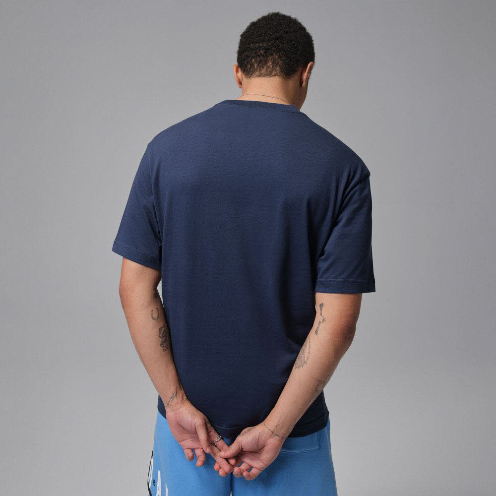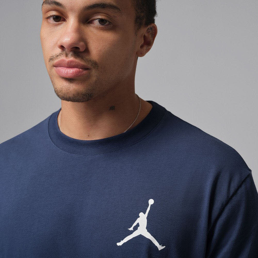 Lässiges T-Shirt mit Jumpman-Logo auf Brusthöhe; Rundhalsausschnitt; leicht überschnittene Schultern; Material 100% Baumwolle.
