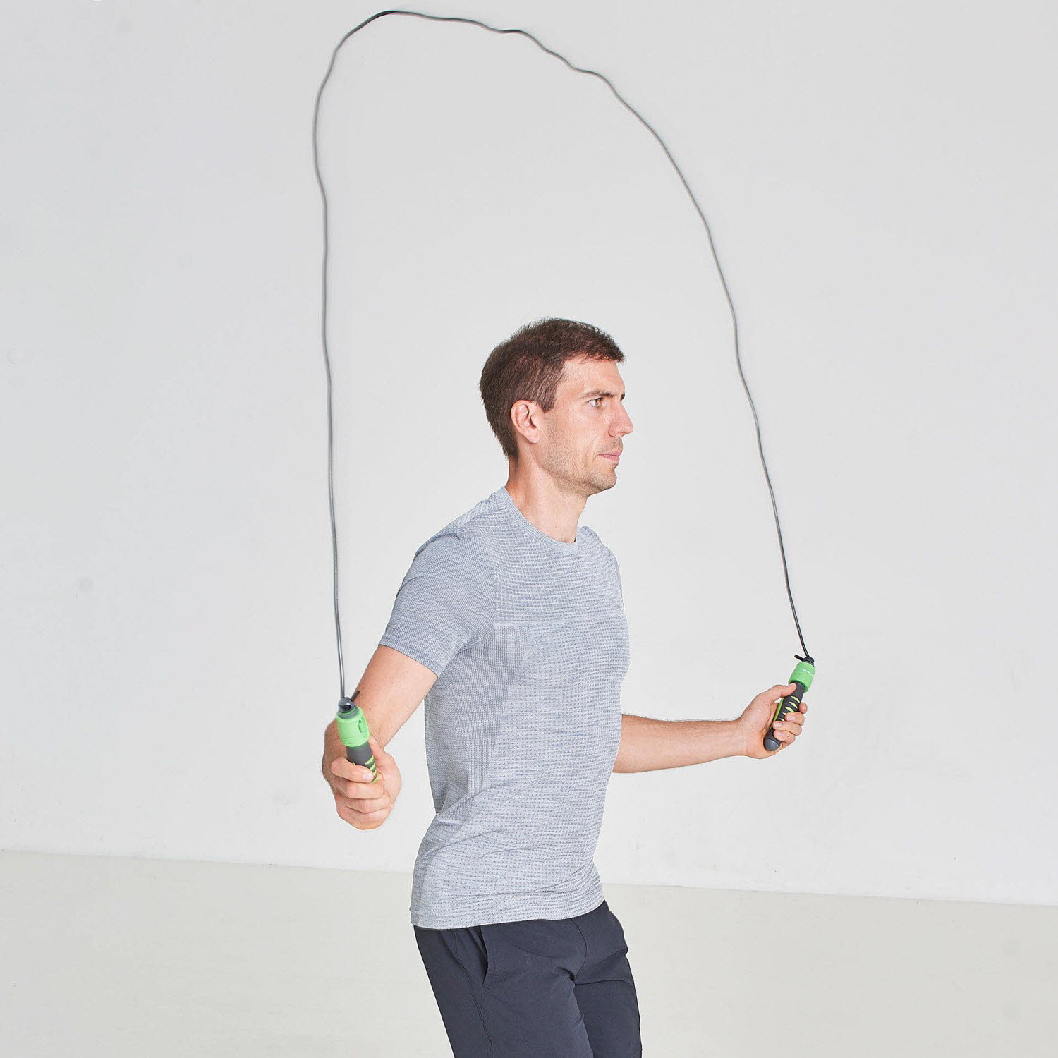Springseil aus PVC mit rutschfesten ABS-Kunststoffgriffen. Mit automatischer Zählfunktion inklusive Löschtaste, max. Länge ca. 270cm (längenverstellbar, inkl. Griffe 300cm). Ausdauertraining mit dem Springseil ist hoch effektiv und bspw. beim Boxtraining zum Aufwärmen sehr beliebt, da kurze Einheiten schon sehr wirkungsvoll und intensiv sind.