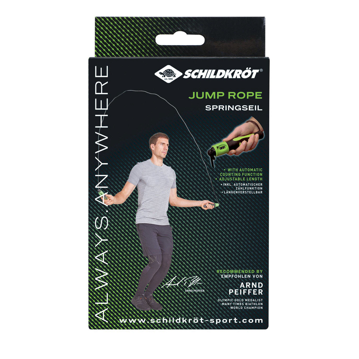 Das vielseitige Fitnesssortiment der Marke Schildkröt bietet seit 2013 eine große Auswahl an Kleinfitnessgeräten für den Gebrauch zu Hause oder unterwegs. Durch den hohen Bekanntheitsgrad konnte sich Schildkröt im Fitnessbereich sehr schnell im Markt etablieren. Heute decken renommierte Fachhändler den Bereich Kleinfitnessgeräte mit Schildkröt ab. Zusätzlich wurde Schildkröt in der Rubrik „Fitness" vier Mal in Folge von den Händlern Deutschlands in der SAZ zum „Besten Hersteller" des Jahres gekürt. Im Zuge des umfassenden Marken-Relaunchs konnte Schildkröt mit Arnd Peiffer als Markenbotschafter gewinnen. Der in Niedersachsen geborene Wahl-Bayer Peiffer blickt auf viele Medaillen, Olympia-Siege (u.a. Olympia-Gold im 10-km-Sprint 2018 in Pyeongchang) und Weltmeister-Titel zurück. Für seine Leistungen in der Saison 2018/19 wurde der amtierende Weltmeister außerdem mit dem Goldenen Ski ausgezeichnet, der als höchste Auszeichnung unter den deutschen Ski-Sportlern gilt. Schildkröt bietet eine Vielzahl von Trainingsmethoden und Anweisungen für seine Fitness Produkte. Scannen Sie den QR-Code auf der Verpackung oder besuchen Sie unsere Website, um Tipps und Schulungsvideos zu erhalten.