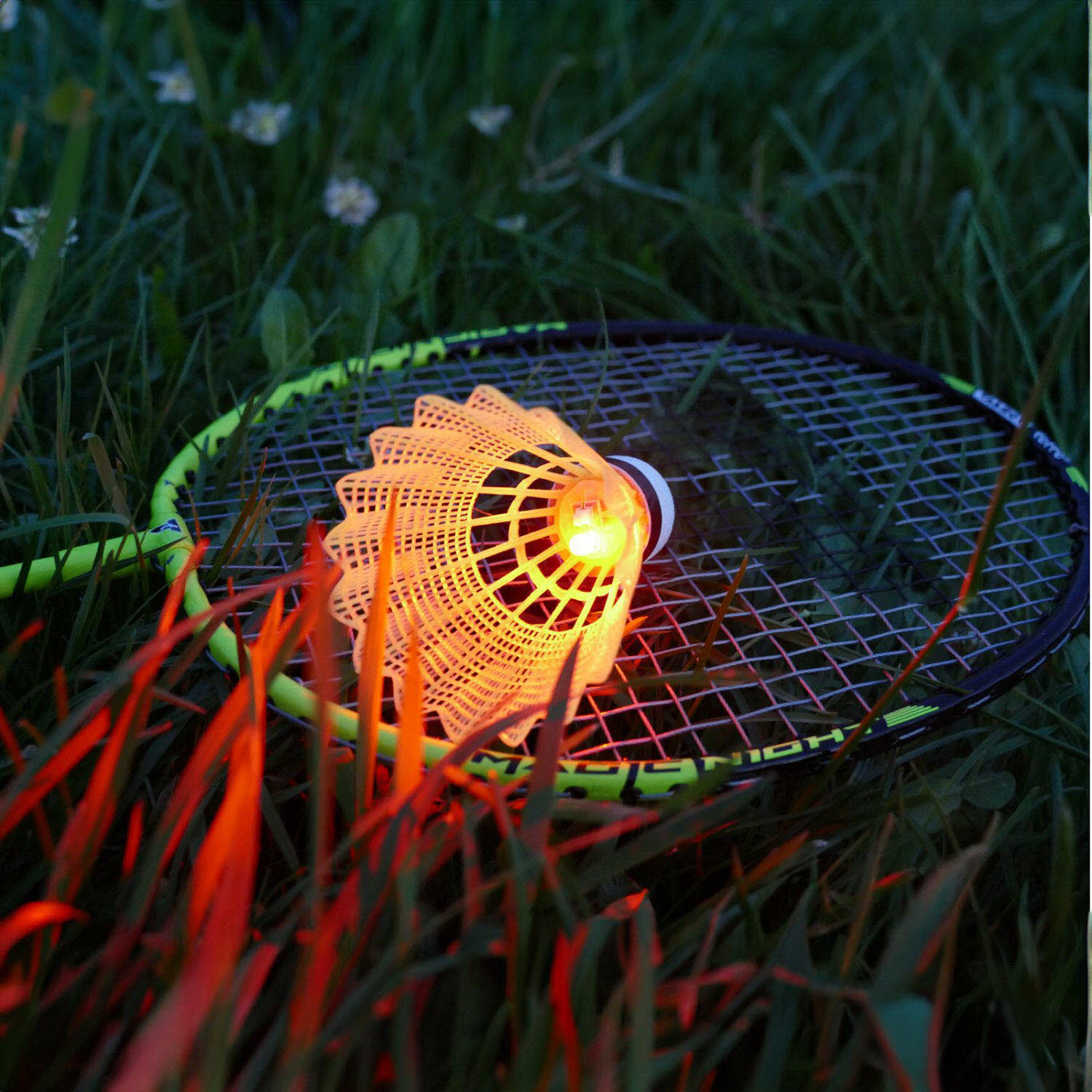 Der besondere Federball-Freizeitspaß von Talbot-Torro ist das neue Magic Night Set. Mit diesem Set können Sie Federball ab sofort auch bei Nacht spielen! Das Set besteht aus zwei robusten Schlägern mit hart bespannter, multifiler Saite. Das absolute Highlight in diesem Set sind die neu entwickelten LED-Federbälle; robuste Kunststofffederbälle, die auf Innenseite einen Schalter für die LED-Beleuchtung haben. Im Lieferumfang enthalten ist jeweils ein weißer Ball, der grün leuchtet sowie ein gelber Federball, der die Nacht rot erleuchten lässt. Die Brenndauer beträgt jeweils circa 48 Stunden. Die LED-Bälle sind mit einer CR927 Batterie ausgestattet. Die Batterie ist nicht austauschbar. Bitte nicht im Hausmüll entsorgen. Das Nylon-Carrybag passt nicht nur perfekt zur Schlägeroptik, sondern ist vor allem praktisch für den Urlaub am Strand, im Garten oder im Park. Nominiert zum "Top 10 Spielzeug" 2019. Hier empfehlen wir Ihnen die 3er Dose Magic Night Federbälle - Artikelnummer: 479123. Nominiert zum "Top 10 Spielzeug".